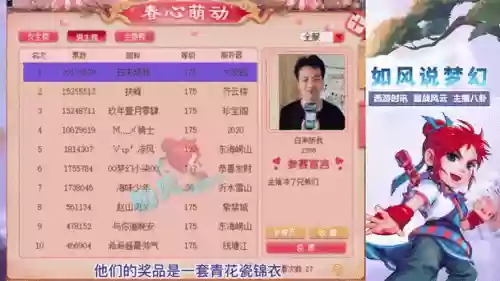 1、在《梦幻西游》电脑版中,一场名为“春心萌动”的大赛正热火朝天地展开,为玩家提供了一个展示颜值,争夺游戏大礼的舞台。参与者只需上传个人照片或小视频,通过长安城(223,108)的“春心萌动使者”报名,分为男生和女生两组进行比赛。